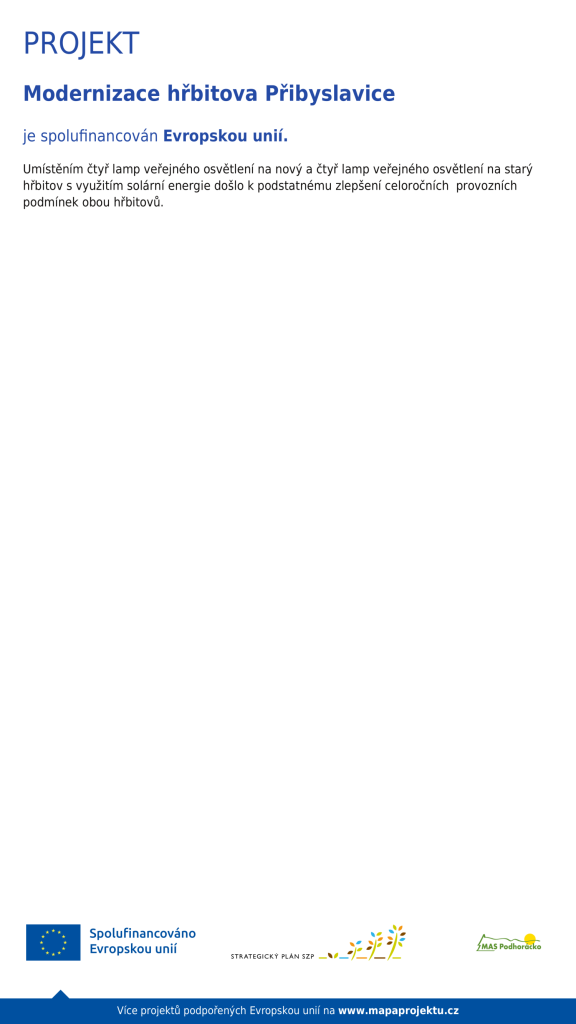V roce 2025 realizovala obec projekt Modernizace hřbitova Přibyslavice. V rámci tohoto projektu bylo na obou hřbitovech umístěno celkem 8 solárních lamp veřejného osvětlení.
